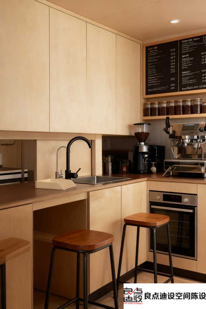 背景里那排木质置物架更是个妙笔。错落有致的设计,不仅多了收纳空间,还让整个店面层次感满满。架上随意放些陶罐、艺术书或复古咖啡器具,立马增添故事感。整体色调以原木、黑白和绿意为主,没半点多余装饰,可就是这种“留白”手法,反而衬得每一处都精致耐看。