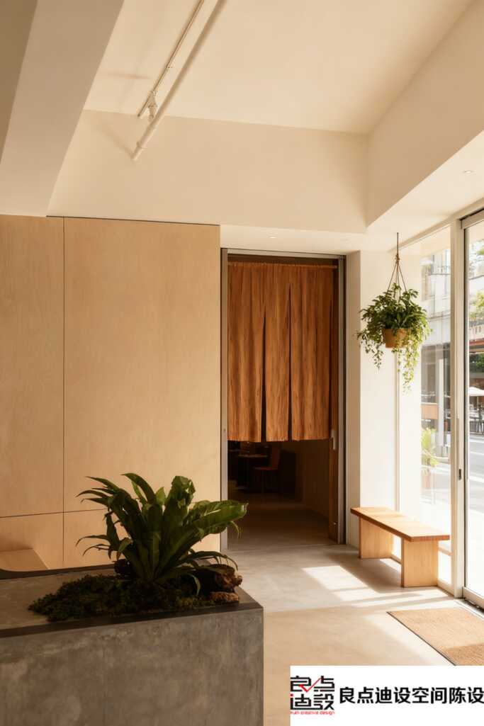 店里还有一扇门,用的是棕色布帘——这个点子太妙了!布帘材质软软的,既保证了里间的隐私,又透着一股子文艺范儿,和整体的自然风格无缝衔接。想象一下,坐在窗边,喝着咖啡,看着布帘轻轻晃动,那感觉,惬意到不行。整个软装设计,从配色到材质,都围绕着“简约自然”的风格展开,没有一点多余,却处处是心机。难怪我一进去,就想约上闺蜜,泡一下午,享受慢时光。