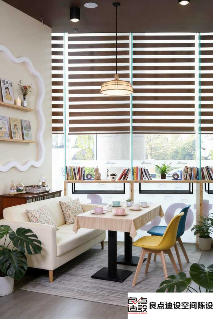 软装细节才是重头戏!桌椅选的都是实木材质,纹理自然,手感温润,坐上去妥妥的放松。沙发区更是心机所在——绒面沙发搭配简约茶几,朋友小聚贼合适,一窝就是一下午。墙上的装饰画和复古时钟,不是随便挂挂的哦,每一幅都像在讲故事,文艺范儿拿捏得恰到好处。偷偷说,这些都是“良点迪设空间陈设”的手笔,专业团队搞的,难怪质感在线!