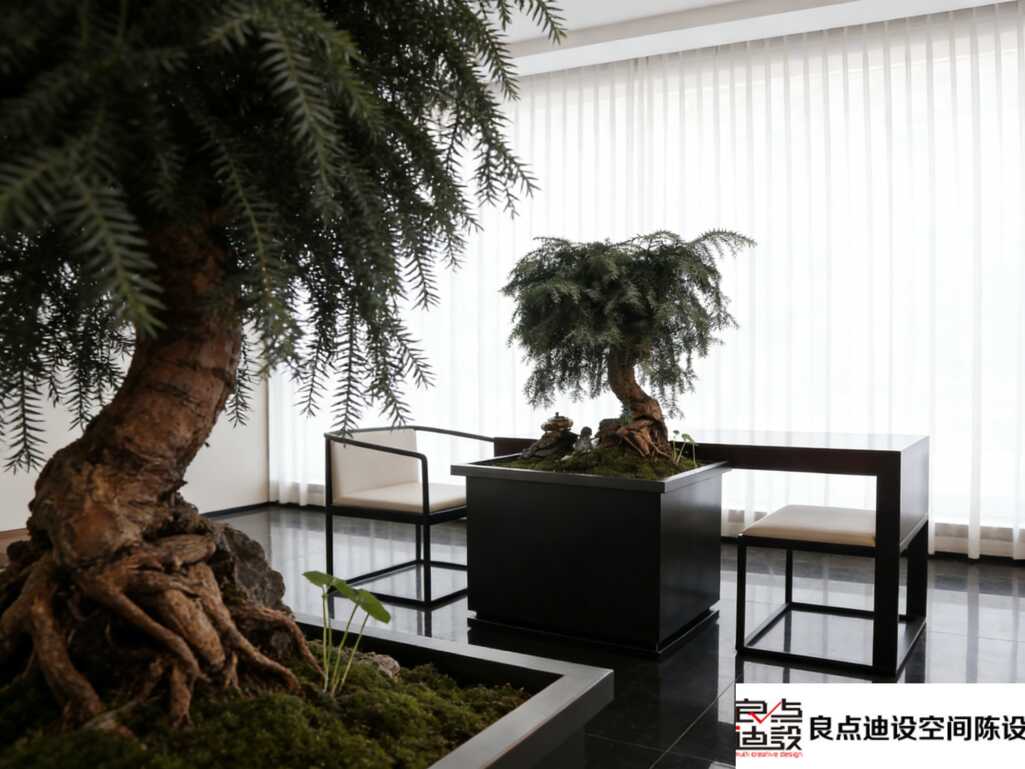 地面也暗藏玄机!白石铺径+绿苔点缀,配上造型松石造景,仿佛把江南园林搬进了室内。走动时脚下沙沙作响,那种自然舒缓的节奏,一下子就把心境沉淀下来了。