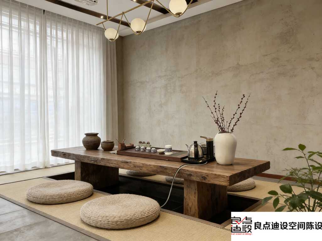 总结一下,这家茶楼的软装之所以抓人,是因为它不是在堆砌中式符号,而是在营造一种心境。所有设计都围绕“让人安心坐下喝茶”展开。如果你也想打造一个不落俗套的新中式空间,完全可以照搬这个思路:天然材质+冷暖对比+局部绿植点缀+注重光影层次。