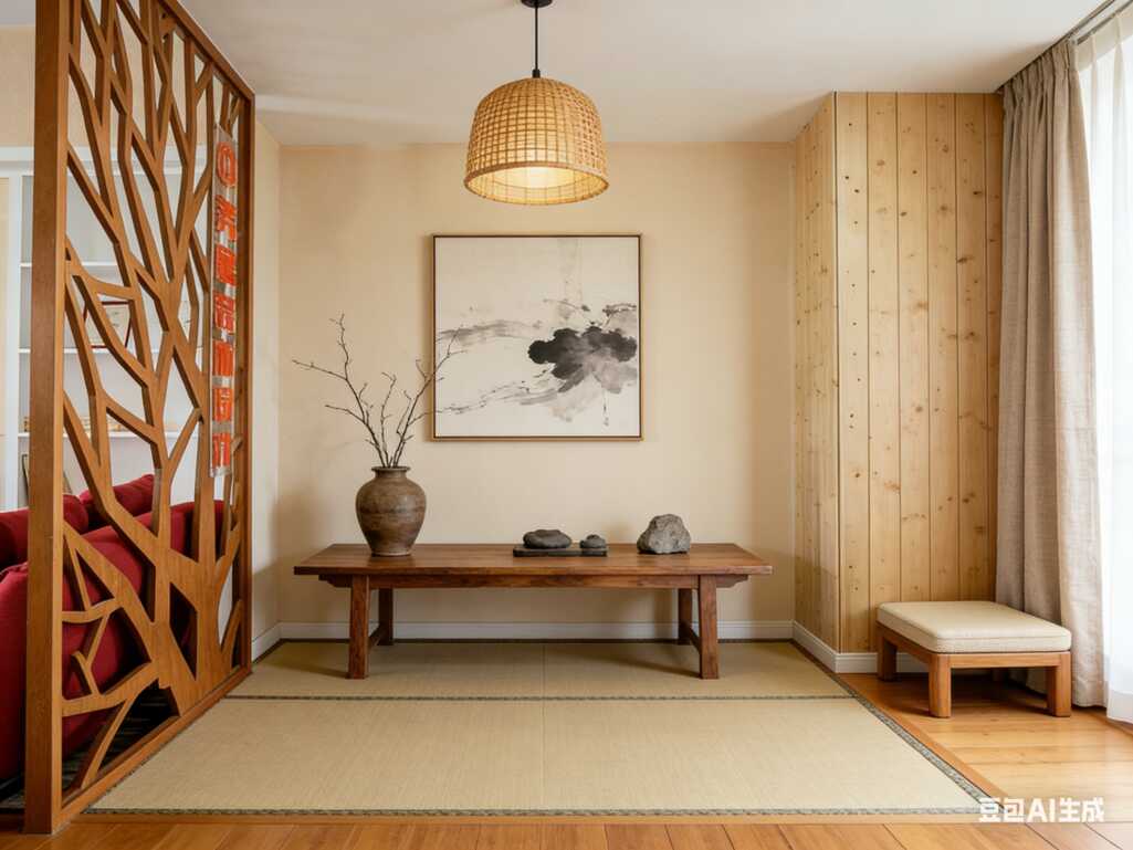 比如那个蓝色花瓶,不只是插花,它和地毯的蓝色呼应;那个树形屏风,不只是隔断,它让光线有层次;那个佛像,不只是装饰,它给空间注入静谧能量。