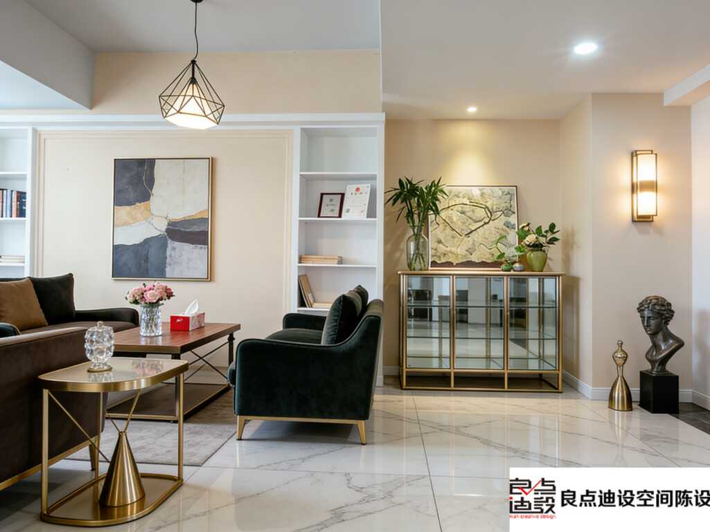 重点来了,这套软装设计的精髓是“不堆砌,重比例”。每个单品都有呼吸感,不会塞满,也不会空旷。颜色控制在3个主色调+2个点缀色,视觉上非常统一,但又不会单调。材质上金属+绒布+玻璃+石材,碰撞出丰富的触感和视觉体验。