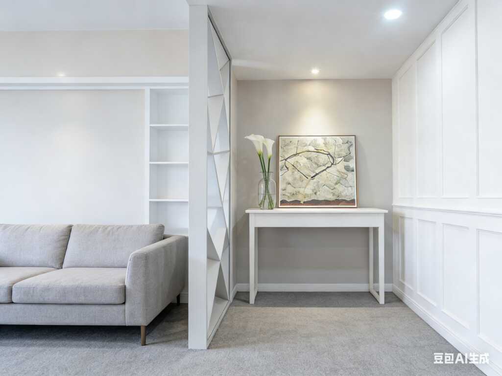 先说整体风格,这明显是“轻奢+现代混搭风”,但重点不在“轻奢”的贵,而在“混搭”的巧。墙面选的是温柔的米灰调,不刺眼,不单调,搭配白色护墙板做层次,视觉上立马显大显亮。地面是大理石纹瓷砖,光脚踩都舒服(当然我们不会真光脚哈哈哈),而且反光感让整个空间更通透,采光不好也不怕。