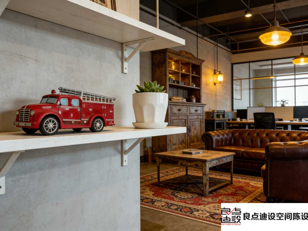 角落里那个老榆木柜子是老板从旧货市场淘的,刷了层清漆就成了收纳神器。还有茶几上的复古皮箱,现在当储物凳用超合适!软装不是非要买新的,把公司里的老物件改造一下,既有故事感又省钱,员工都说每天上班像逛文创园~
