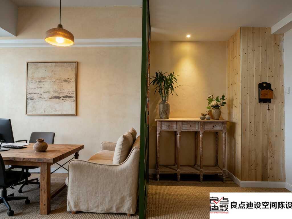 刚开始客户想把网红绿植、ins风摆件全塞进办公室,被我紧急叫停!记住:复古风要的是"克制的精致",每样单品都要有故事感,比如茶几选实木拼接款,故意留着树结纹理,比光滑的大理石更有温度~