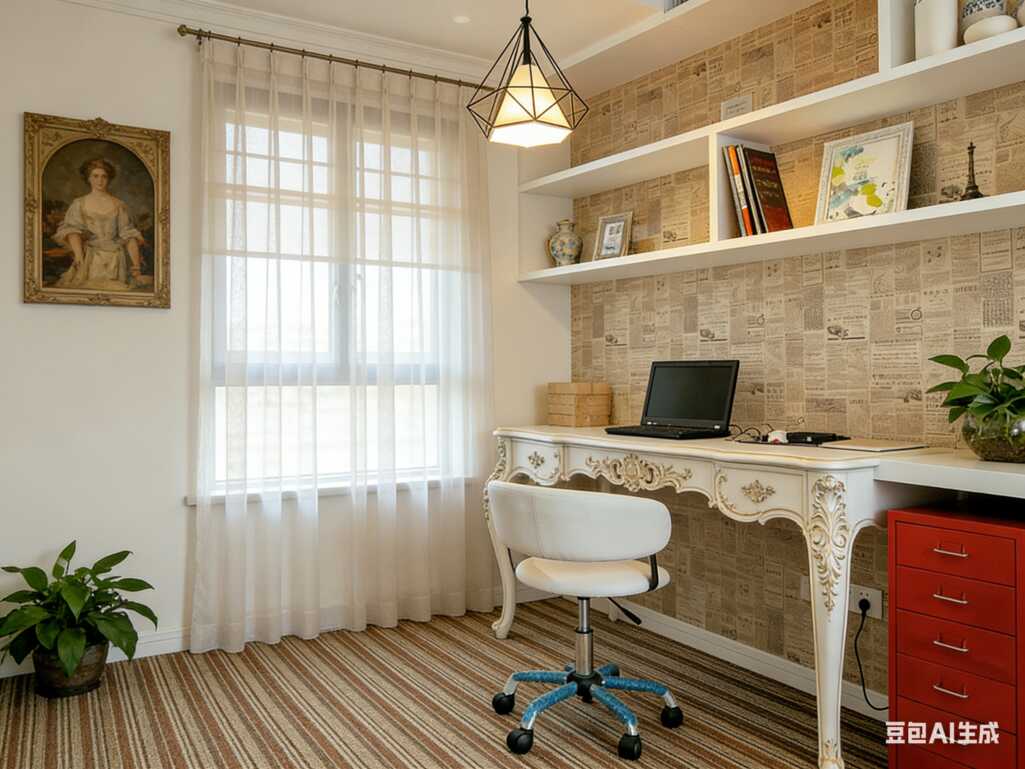 细节才是软装的杀手锏呀!墙边堆了三个不同大小的素陶罐子,插几根干枯枝,不用打理就很有意境;墙上挂的浮世绘美人图,刚好呼应东方调性,不突兀还很有品位;头顶这个宣纸吊灯,开了灯之后暖光漫出来,整个空间都软乎乎的,完全没有冷白办公灯的生硬感✨ 连办公区那棵大发财树都选对了!高盆栽刚好填了空白角落,活起来的绿植就是最好的软装,给整个空间添了生气🍃
